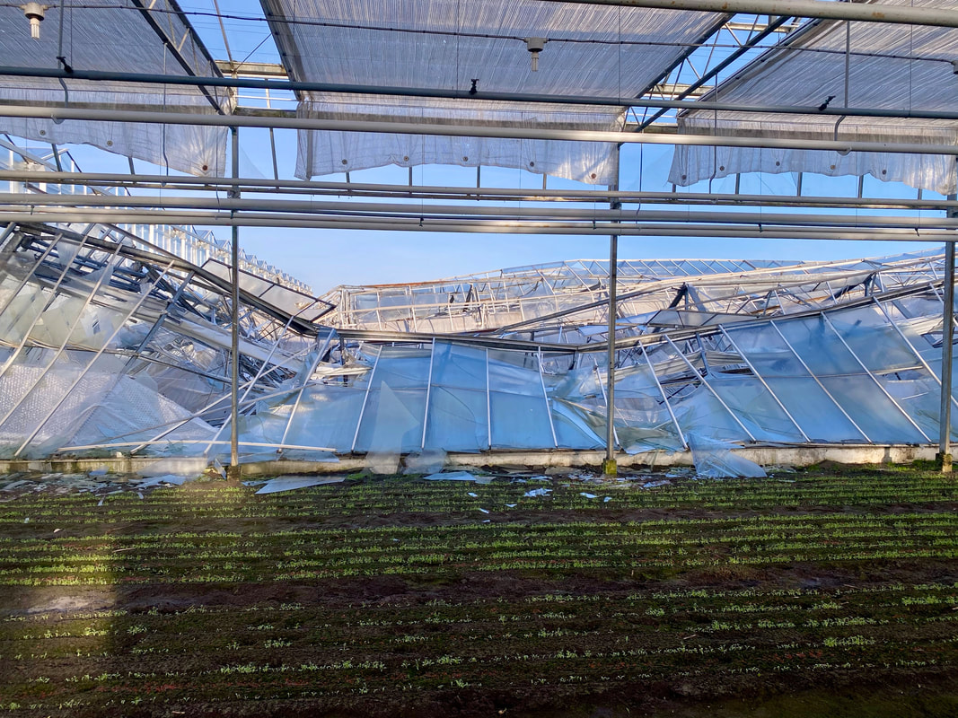 Windhoos Nederland 2021 - Project: Watersilo Solleveld - TST BV - Totaal-Service voor de Tuinbouw - De windhoos zorgde voor vernielde tuinhuisjes, weggewaaide trampolines en bomen die op auto's.